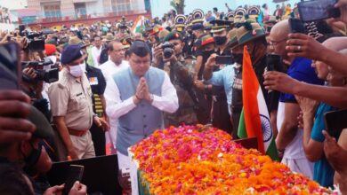 उत्तराखण्ड: सीएम धामी ने 1984 में सियाचिन में ऑपरेशन मेघदूत के दौरान शहीद हुए लांसनायक चन्द्रशेखर हर्बोला के पार्थिव देह पर पुष्पचक्र अर्पित कर श्रद्धांजलि दी