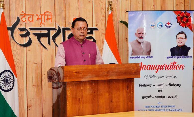 देहरादून। उत्तराखंड सरकार ने हवाई संपर्क को मज़बूत करने की दिशा में एक और बड़ा कदम उठाया है। मुख्यमंत्री पुष्कर सिंह धामी ने बुधवार को पिथौरागढ़-मुनस्यारी-पिथौरागढ़ और हल्द्वानी-अल्मोड़ा-हल्द्वानी हेली सेवाओं का वर्चुअल शुभारंभ किया। यह सुविधा क्षेत्रीय संपर्क योजना (उड़ान योजना) के अंतर्गत शुरू की गई है। मुख्यमंत्री ने कहा कि इन सेवाओं से राज्य के दुर्गम और पहाड़ी क्षेत्रों तक आवागमन आसान होगा और आम नागरिकों को तेज़, सुरक्षित व सुविधाजनक परिवहन का लाभ मिलेगा।