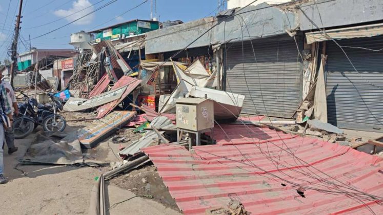 दुकानों के बाहर बनी संरचनाएं ध्वस्त