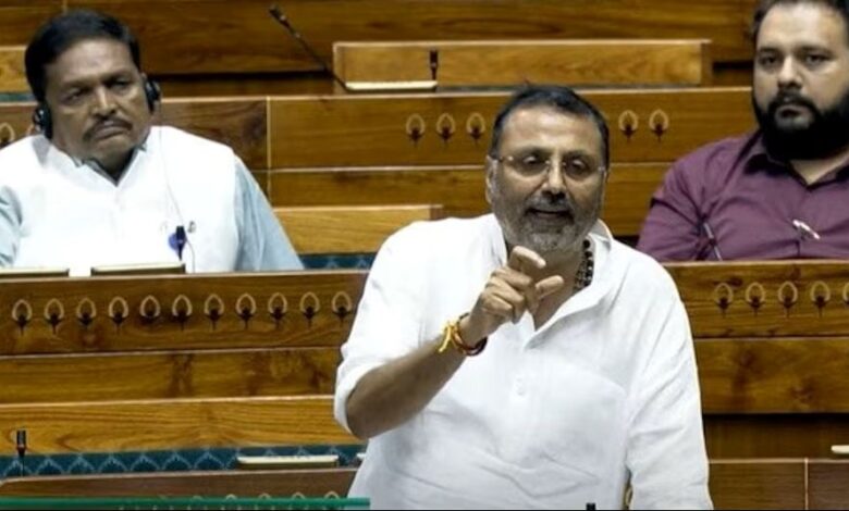 विपक्ष की मांग: निशिकांत दुबे की टिप्पणियों को सदन की कार्यवाही से हटाया जाए (Expunge)।
