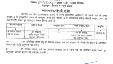Dehradun : उत्तराखंड वन विभाग में बंपर तबादले किए गए हैं, इस संबंध में प्रमुख सचिव आरके सुधांशु ने आदेश…