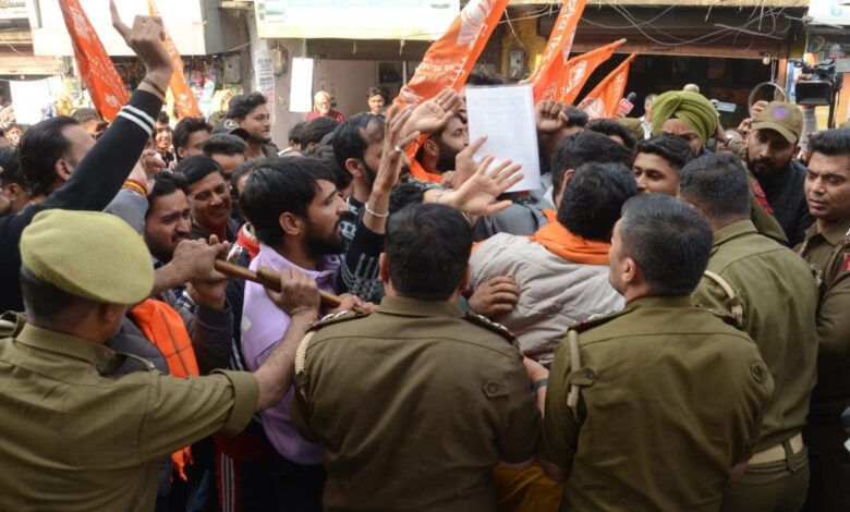 एनसी नेताओं ने इसे समुदाय पर हमला बताते हुए कहा कि यह राजनीति जम्मू-कश्मीर में “नफरत की दीवारें” खड़ी कर सकती है।